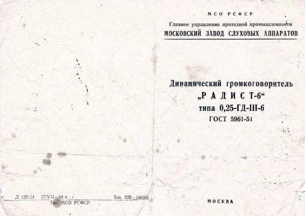 (0,25-ГД-III-6) с 1959 года выпускал Московский завод слуховых аппаратов.