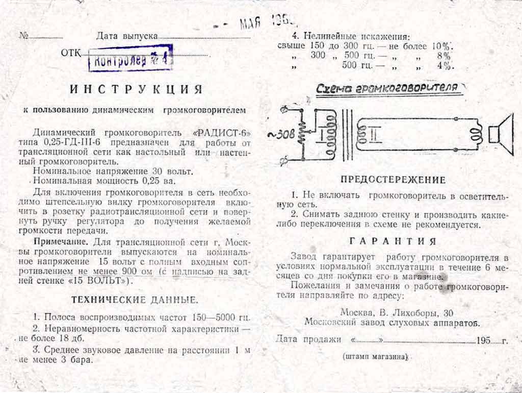 Абонентский громкоговоритель "Радист-6"