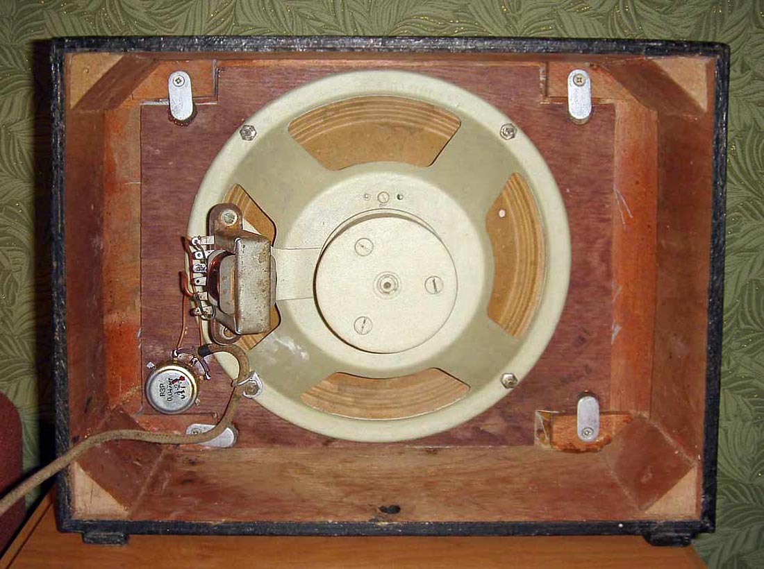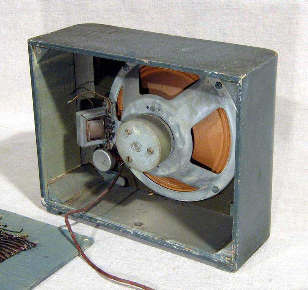 в футляре из фанеры, размером 295х232х210 мм где установлен громкоговоритель,