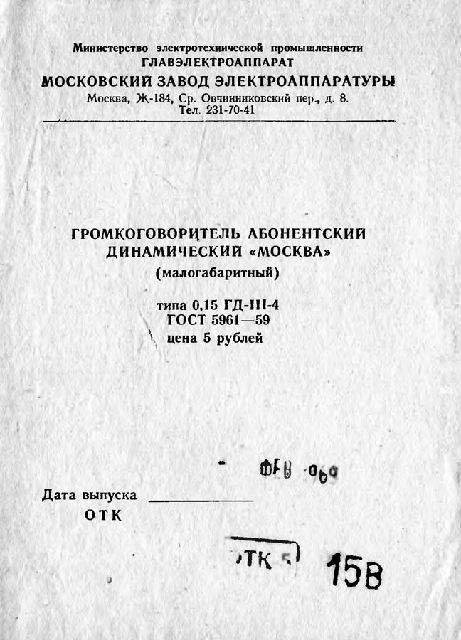 - 200...4000 Гц. Вес абонентского громкоговорителя - 1,1 кг. Цена 5 рублей.