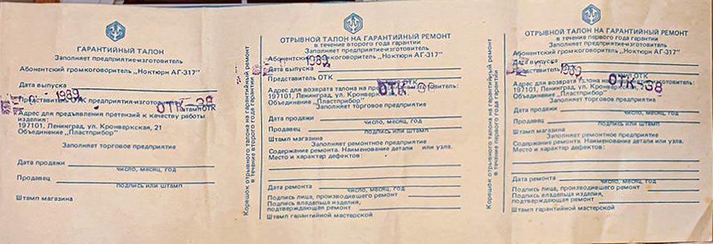 громкоговоритель "Ноктюрн-317" с 1987 года выпускало Ленинградское объединение