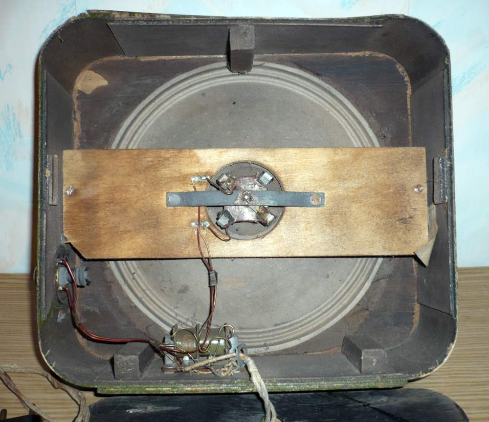 на заднюю стенку футляра. Возможно одна из разновидностей громкоговорителя,