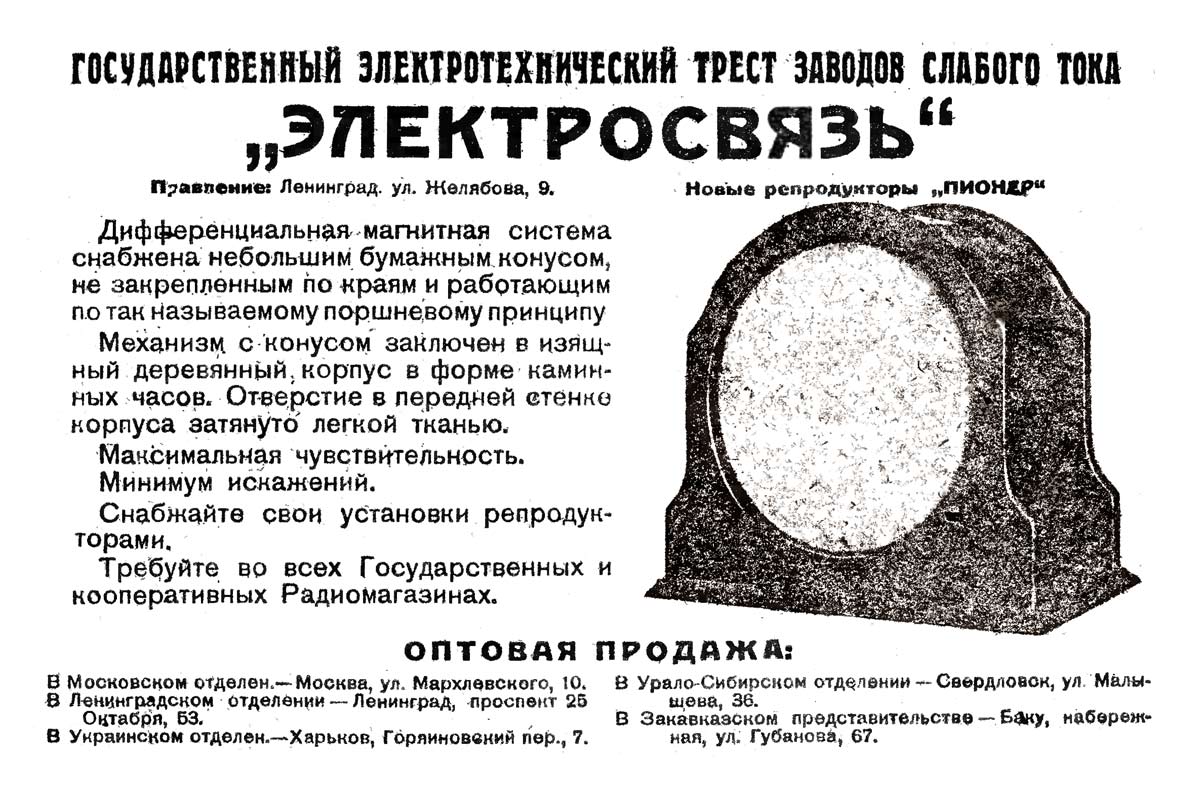 "Пионер" с 1929 года выпускал Ленинградский электромеханический завод имени