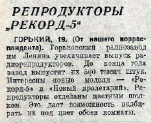 С осени 1936 года в Горьком начался выпуск абонентского громкоговорителя