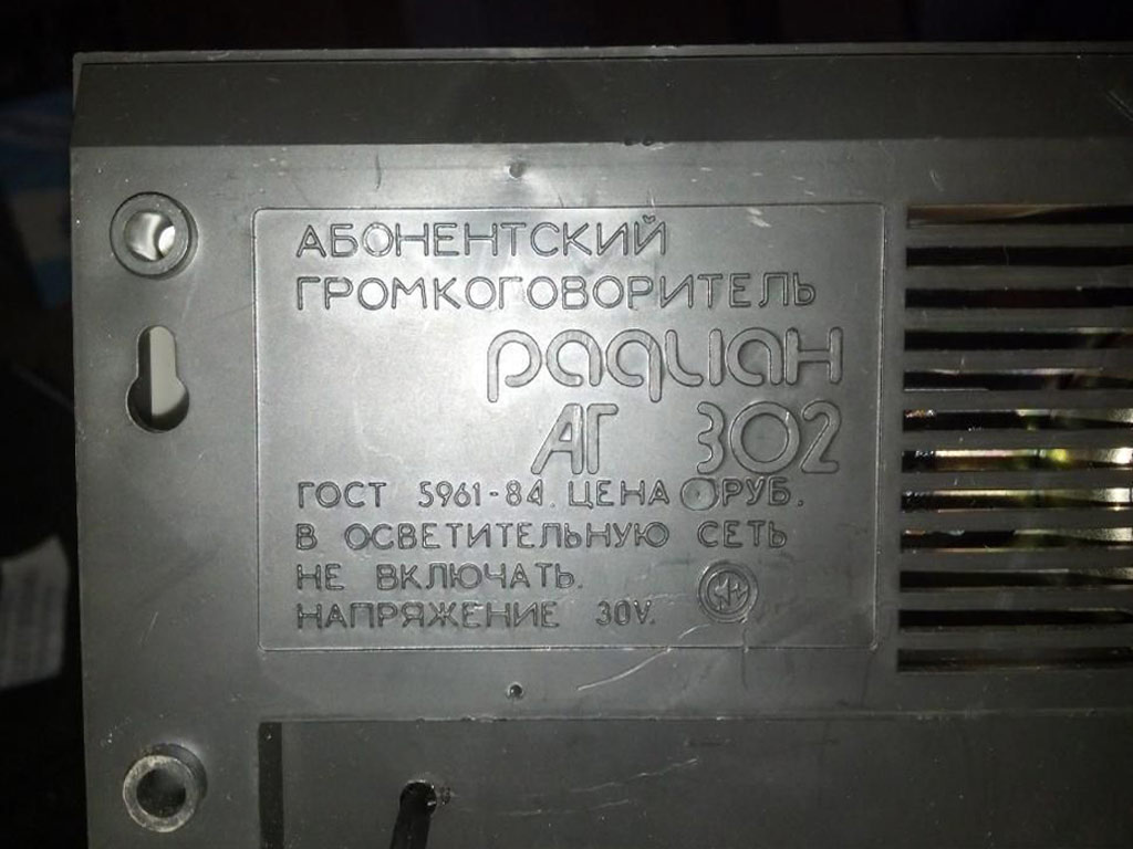 Абонентский громкоговоритель "Радиан АГ-302" предположительно с 1990 года выпускало Кировоградское Производственное Объединение "Радий". Информации по АГ пока нет.