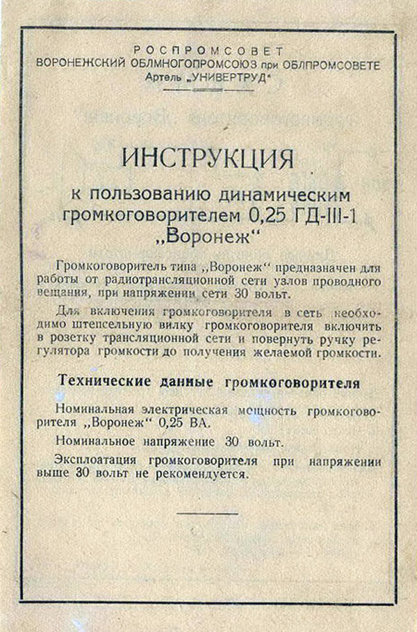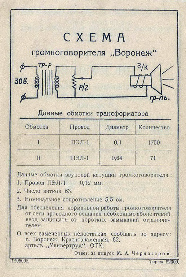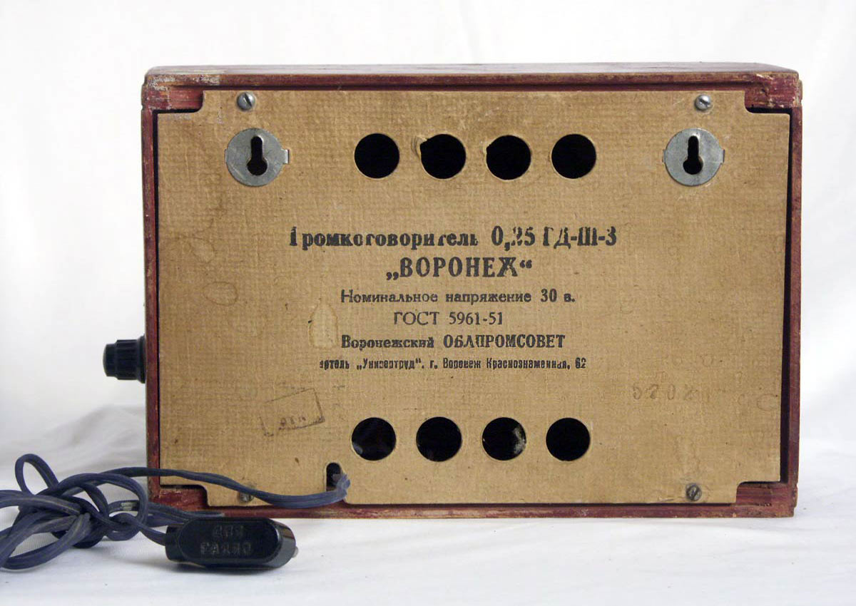 громкоговоритель "Воронеж" с 1954 года выпускала Воронежская артель "Универтруд".