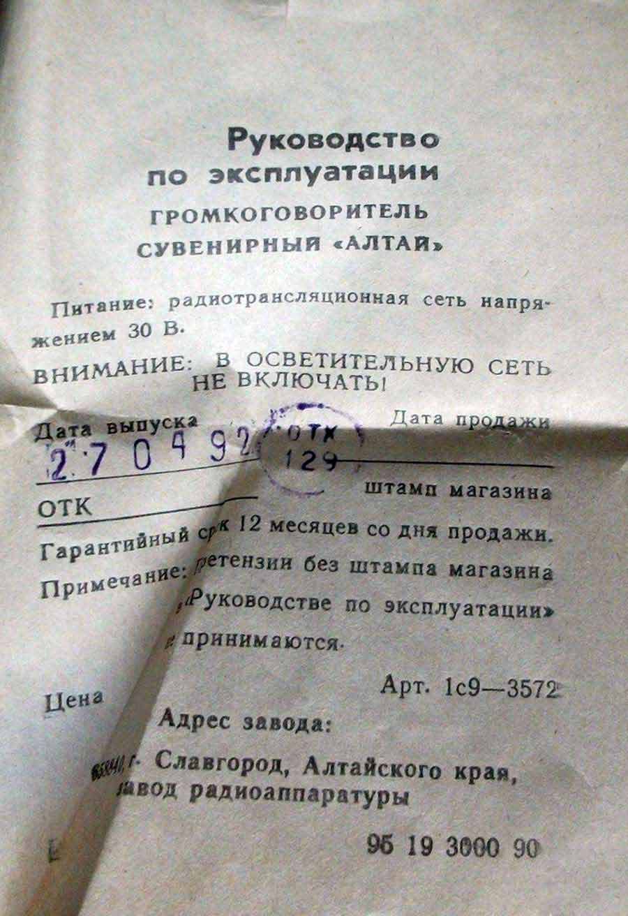 сувенирный громкоговоритель "Алтай" с 1990 года выпускал Славгородский