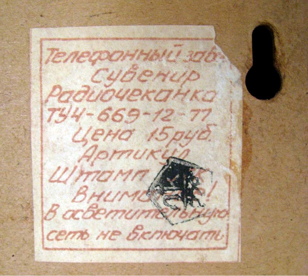 Сувенирный абонентский громкоговоритель "Радиочеканка" (Сувенир Радиочеканка) выпускался предположительно с 1978 года неизвестным телефонным заводом.