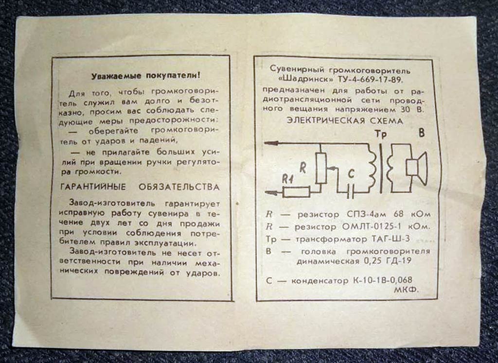 громкоговоритель "Шадринск" предназначен для работы в радиотрансляционных