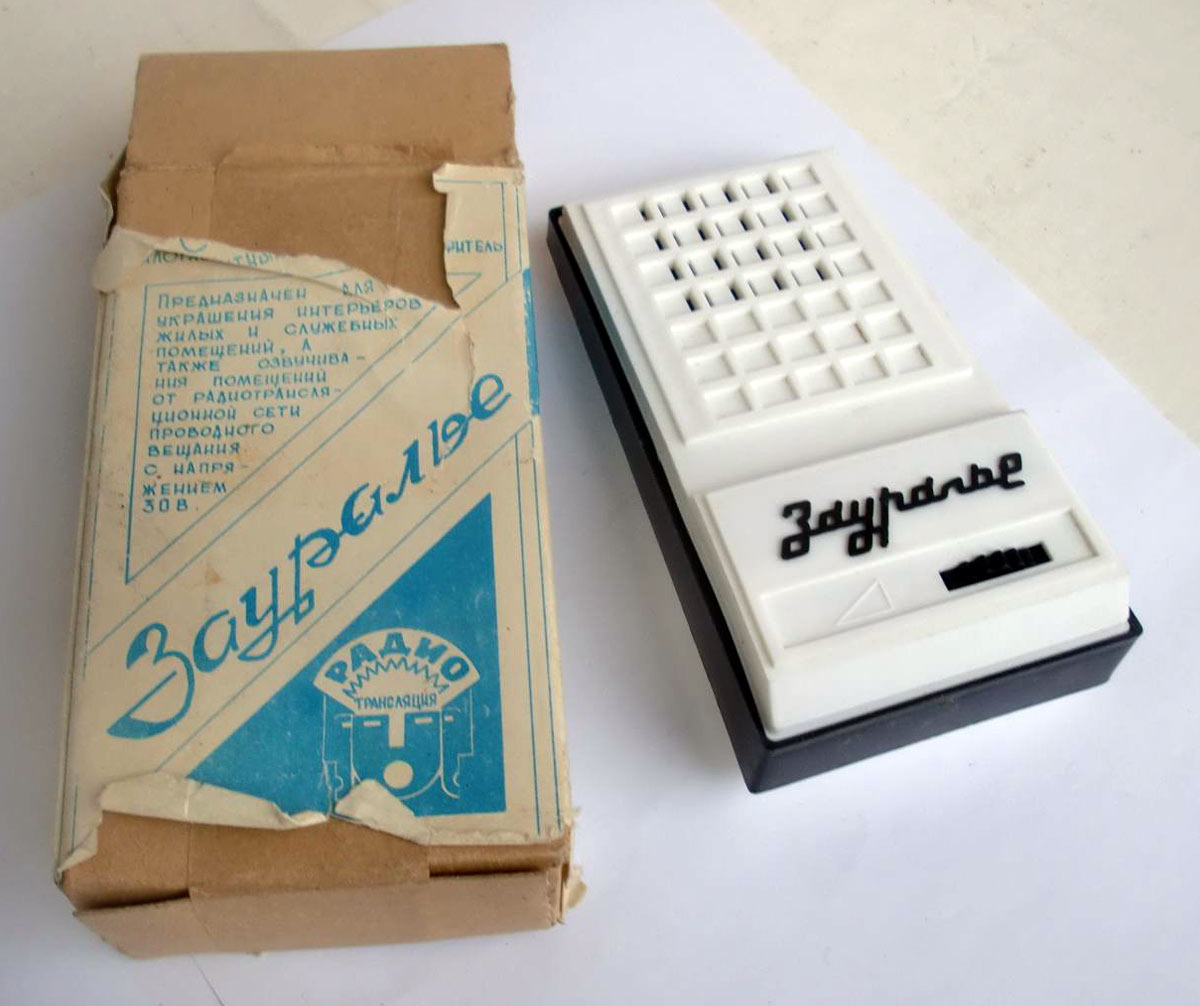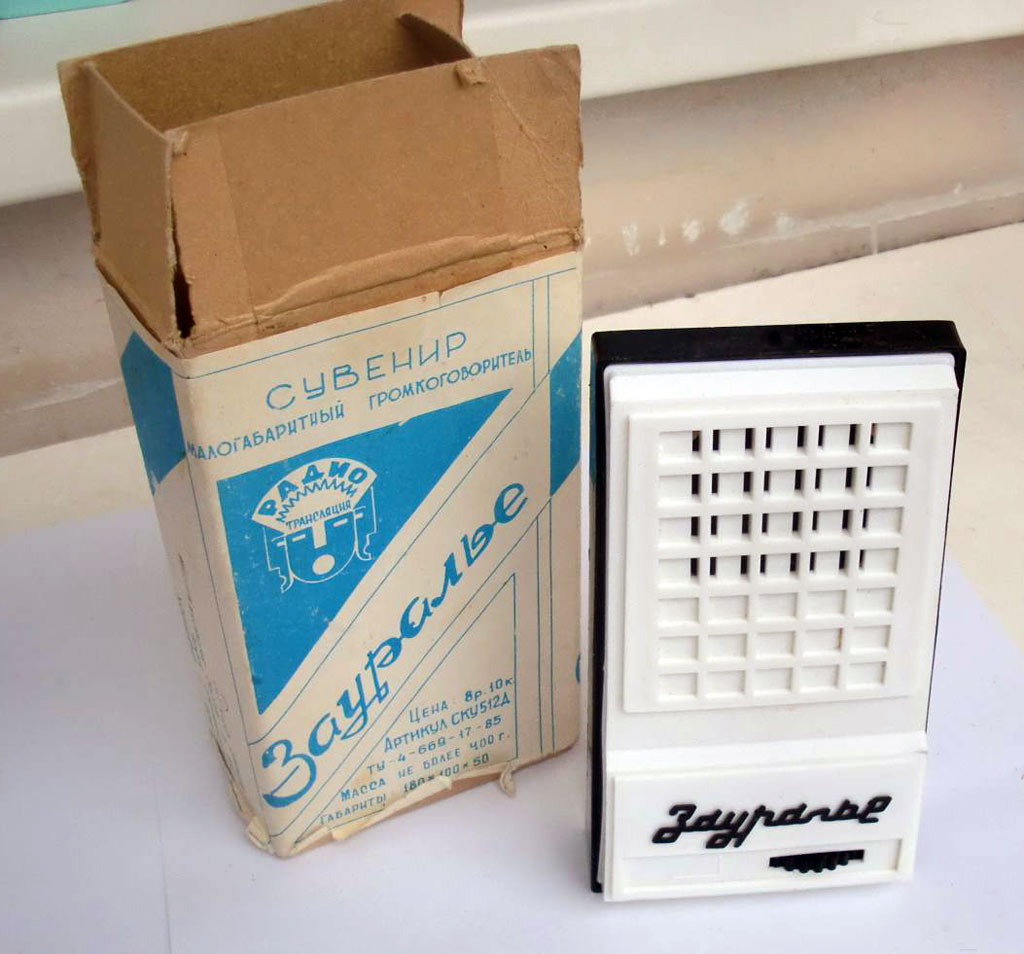 Абонентский сувенирный громкоговоритель "Зауралье" возможно с 1989 года выпускало ОАО "Шадринский телефонный завод". Диапазон частот 200...4000 Гц. Габариты 180х65х23 мм. Вес 340 гр. Цена 8 р. 10 к.