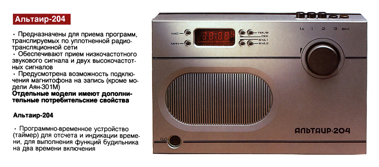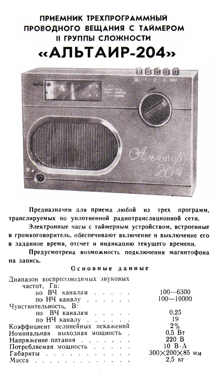 проводного радиовещания с таймером ''Альтаир ПТ-204'' служит для приёма
