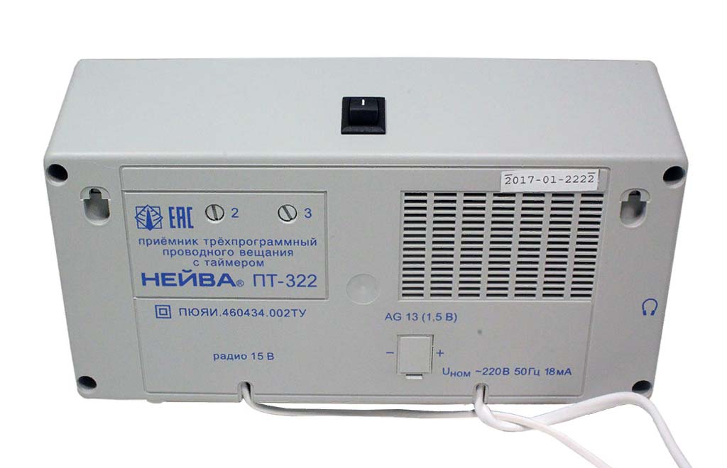 Осуществляет приём передач НЧ канала сети проводного вещания (1 программа),
