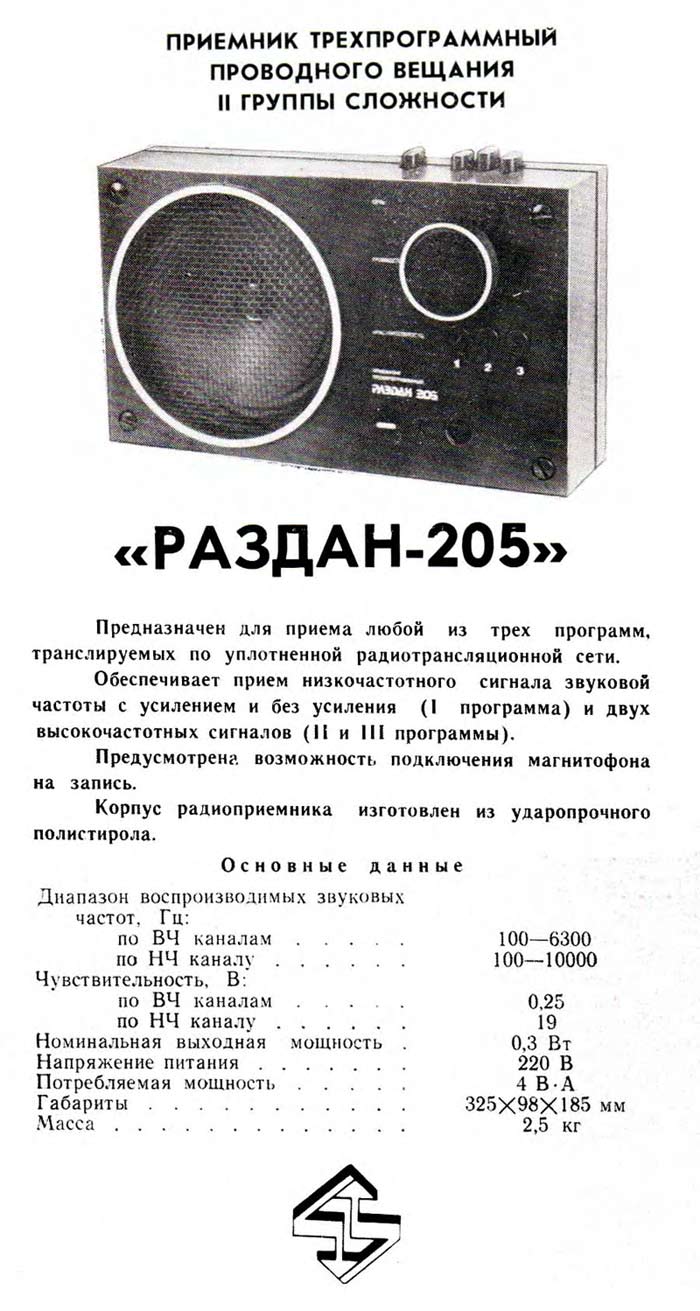 приёмник проводного вещания ''Раздан-205'' создан на базе серийного трёхпрограммного