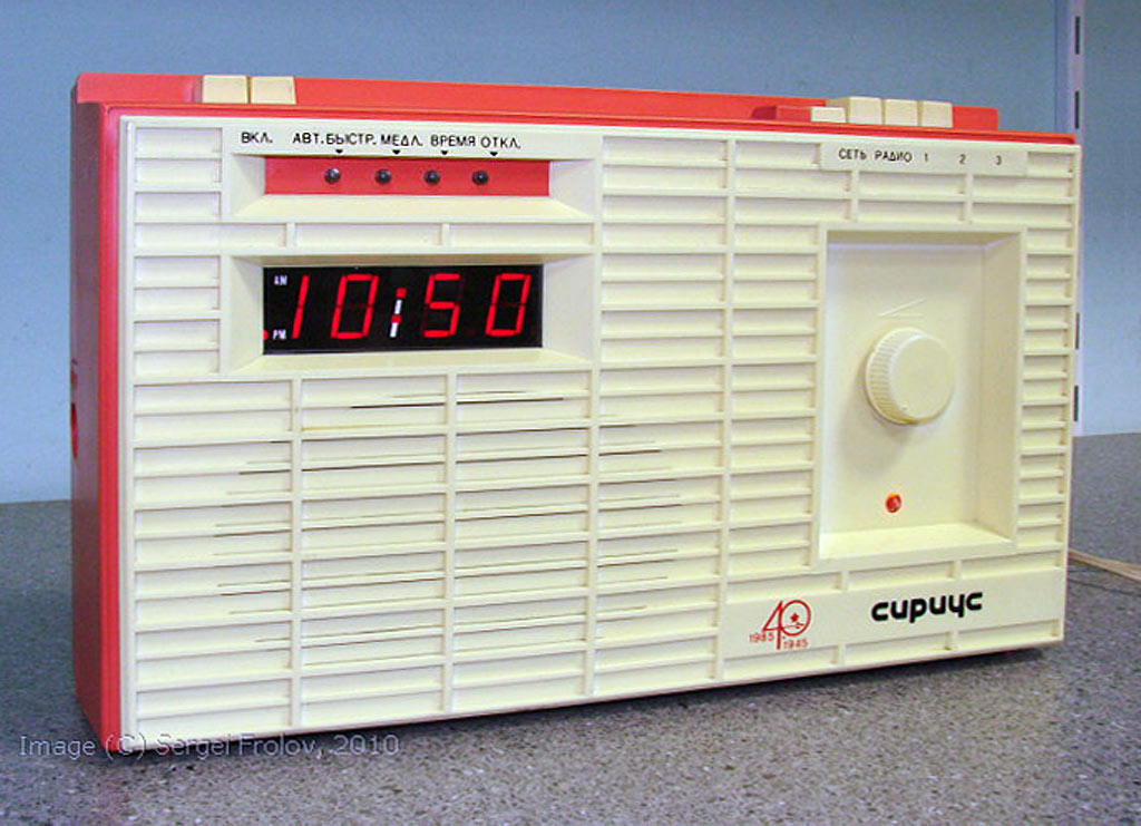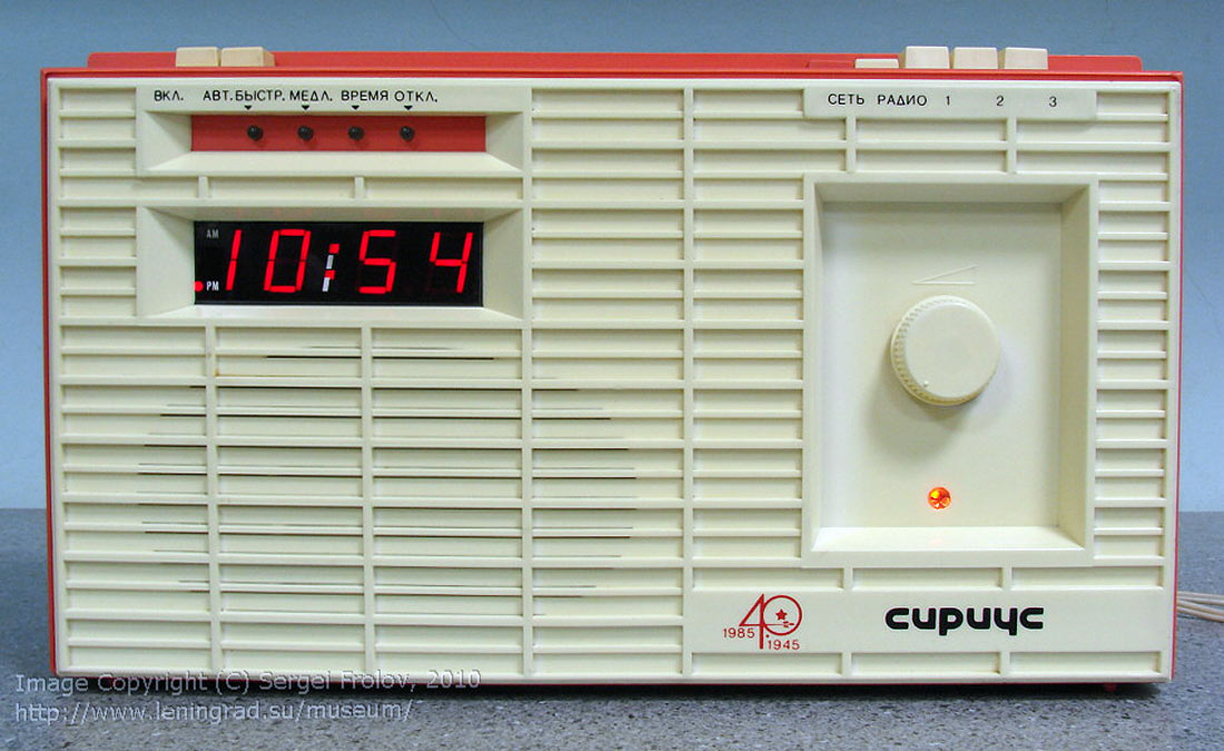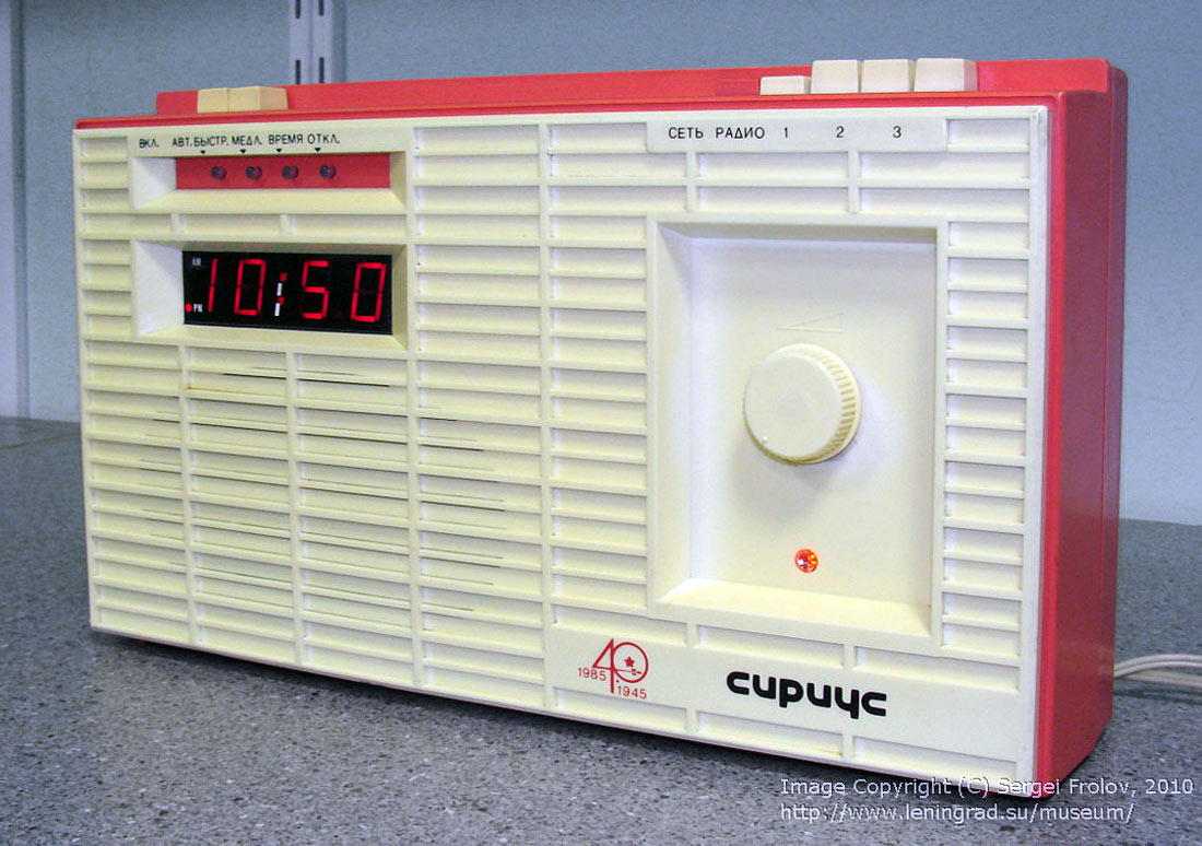 Приёмник трёхпрограммный "Сириус" с 1985 года выпускал Ижевский радиозавод. Выполнен на основе ПТ "Сириус-202" 1984 года, но в другом внешнем оформлении и с добавлением электронных часов (США).