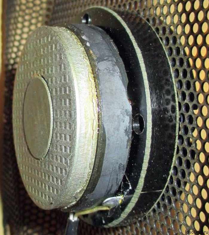 Подвес диффузоров полиуретановый. Над ним расположен шелковый ВЧ громкоговоритель.