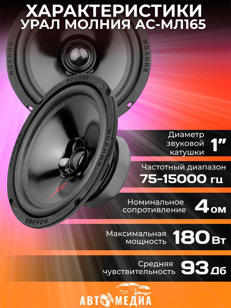 Автомобильная широкополосная акустическая система "Урал Молния АС МЛ-165" выпускалась предположительно с 2022 года компанией "Урал" (производство находится в Китае).