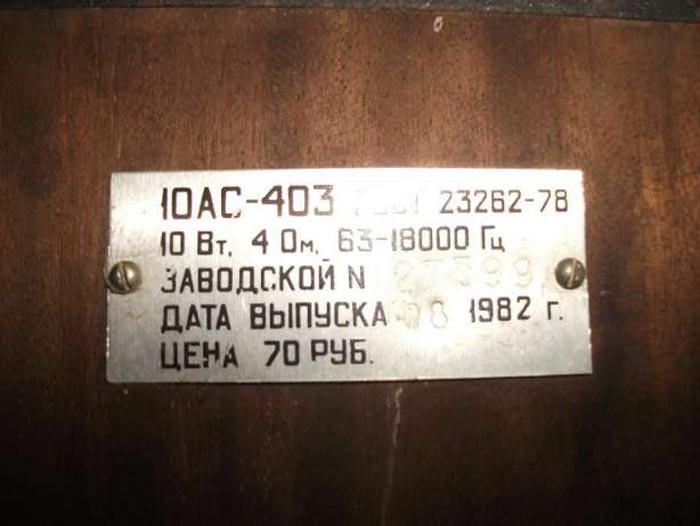 схожа с АС 10АС-403'', отличие в габаритах, массе и оформлении. Номинальная