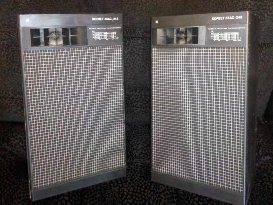 АС шла в комплекте с электрофоном "Корвет-248-стерео". Первые АС имели