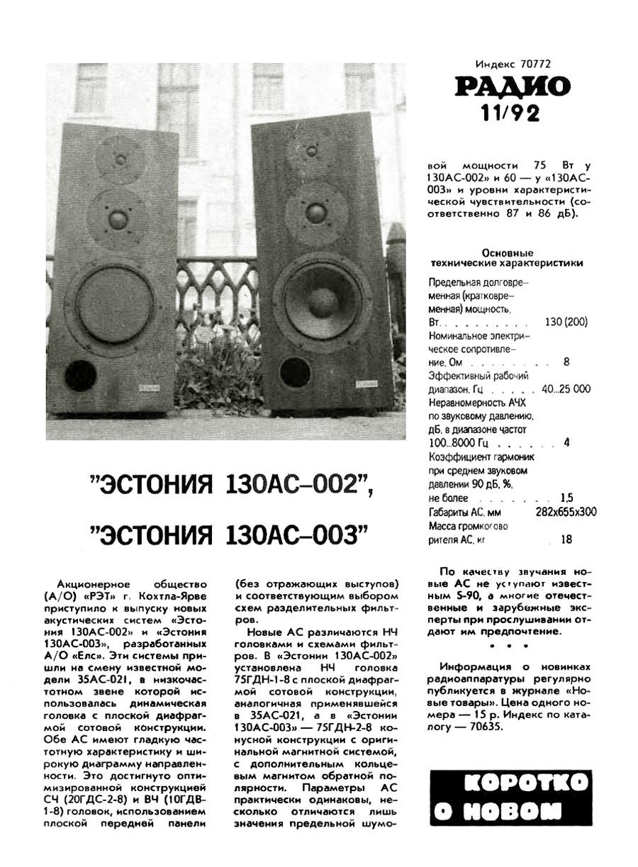 АС "Эстония" читайте в журнале Радио № 11 за 1992 год (последний файл).