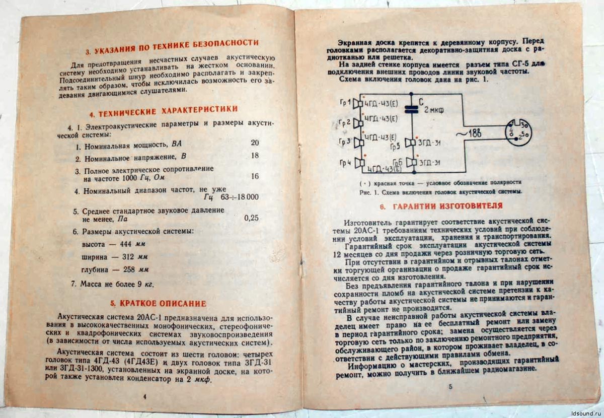 Гц – 3%; габариты АС - 444х312х258 мм; масса 10 кг. Цена 90 рублей. С 1979