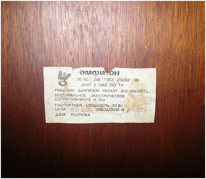 мощность 35 Вт. Диапазон частот 31,5...20000 Гц. Сопротивление 4 Ом. Звуковое