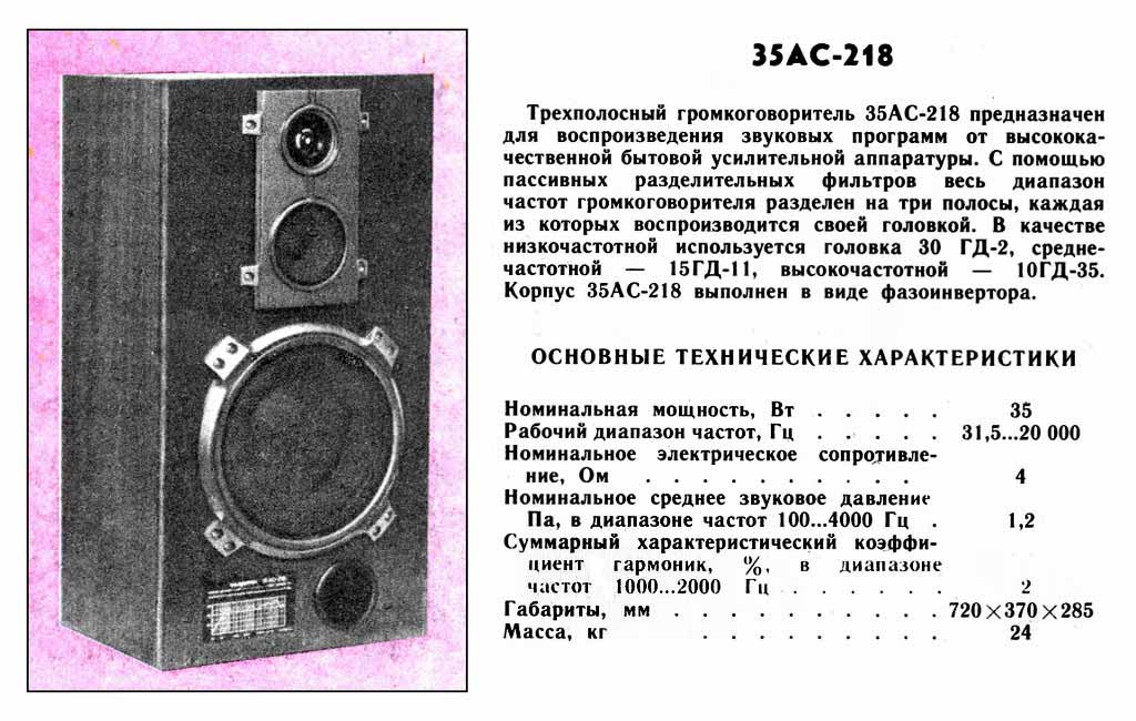Радио. Описание АС в справочнике Ю.П.Алексеева.