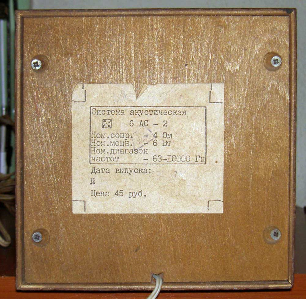 типа "6АС-2" входила в комплект радиолы "Мелодия-101С". Корпус АС сделан