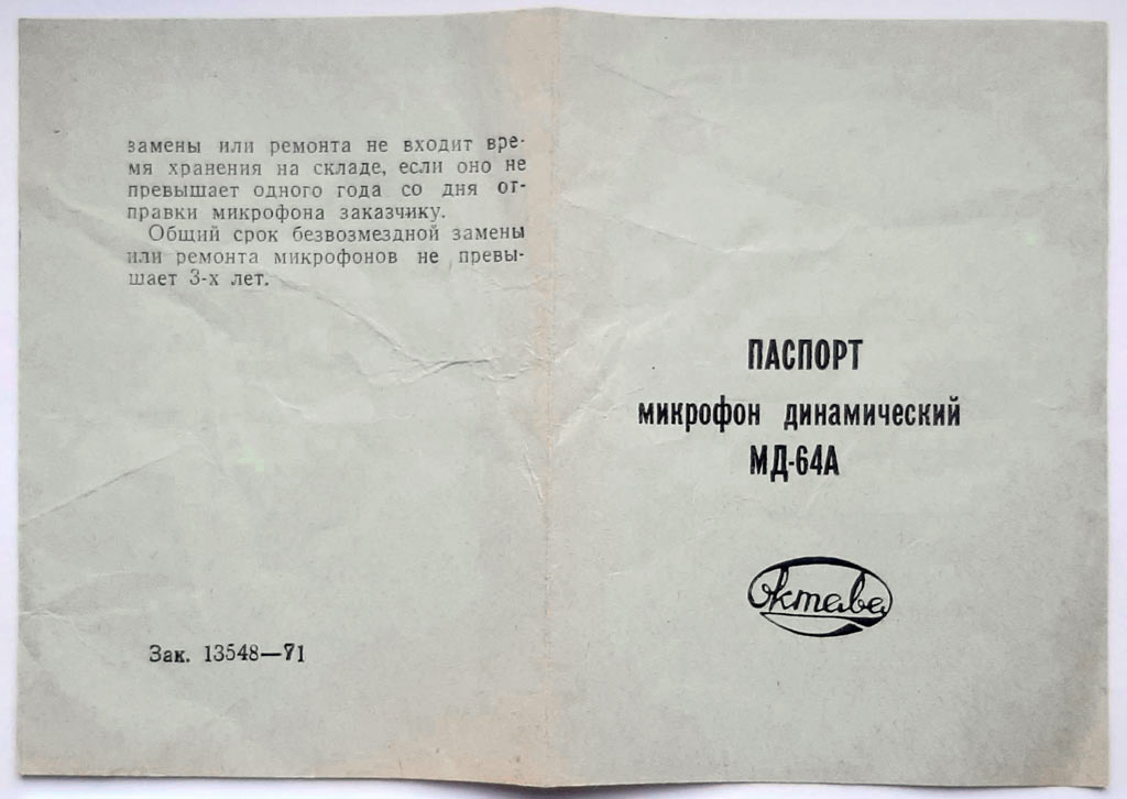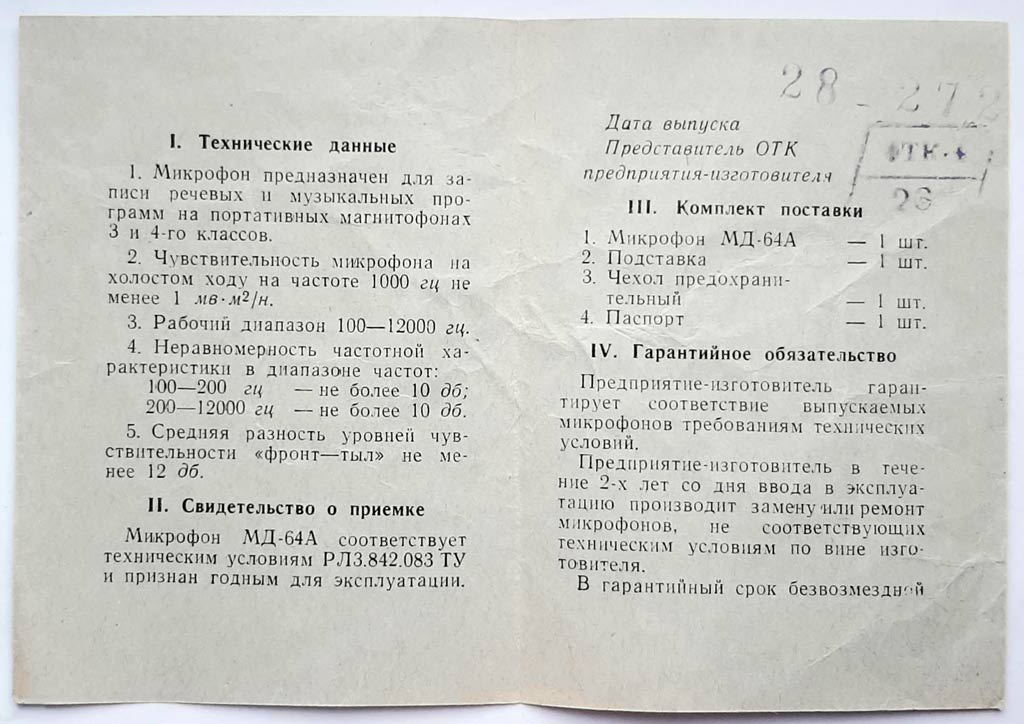 динамический "МД-64А" выпускался с 1967 года Тульским заводом "Октава"