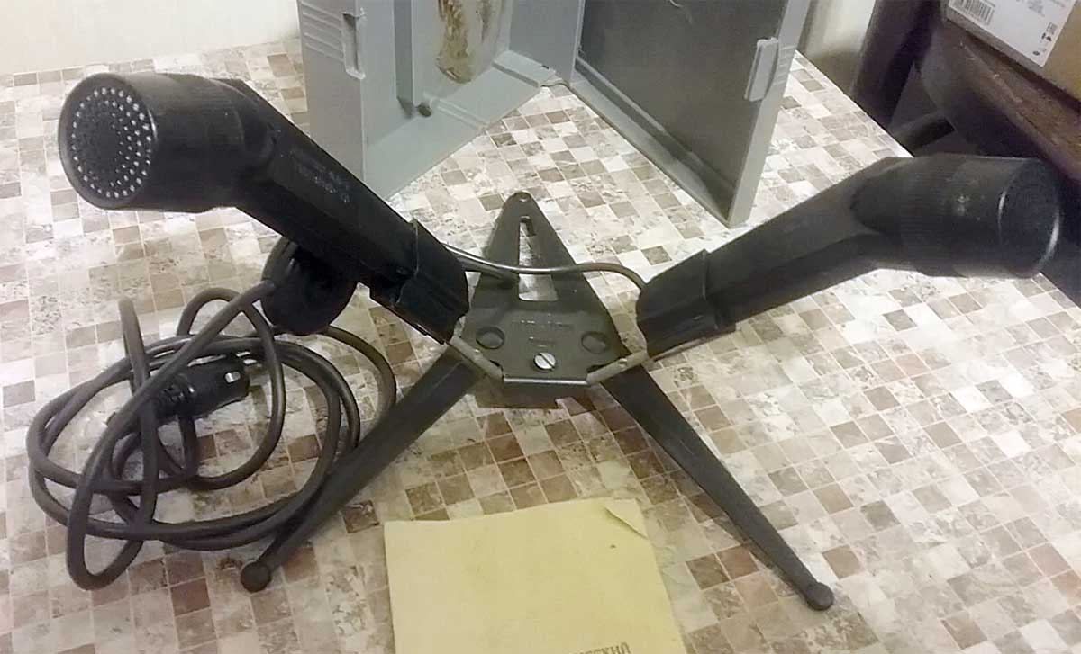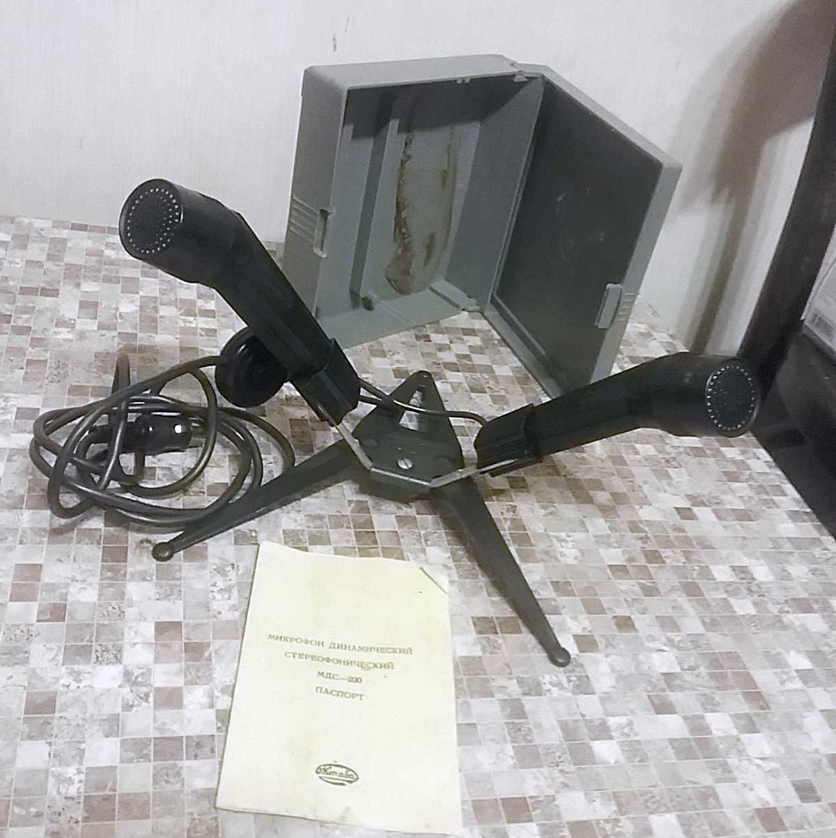 объединённых в одну конструкцию. В комплекте: 2 микрофона "МД-200", подставка,