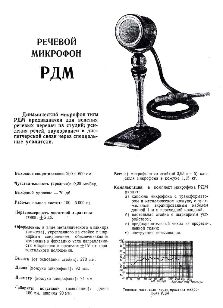 динамический микрофон "РДМ" выпускался предположительно с 1948 года Тульским