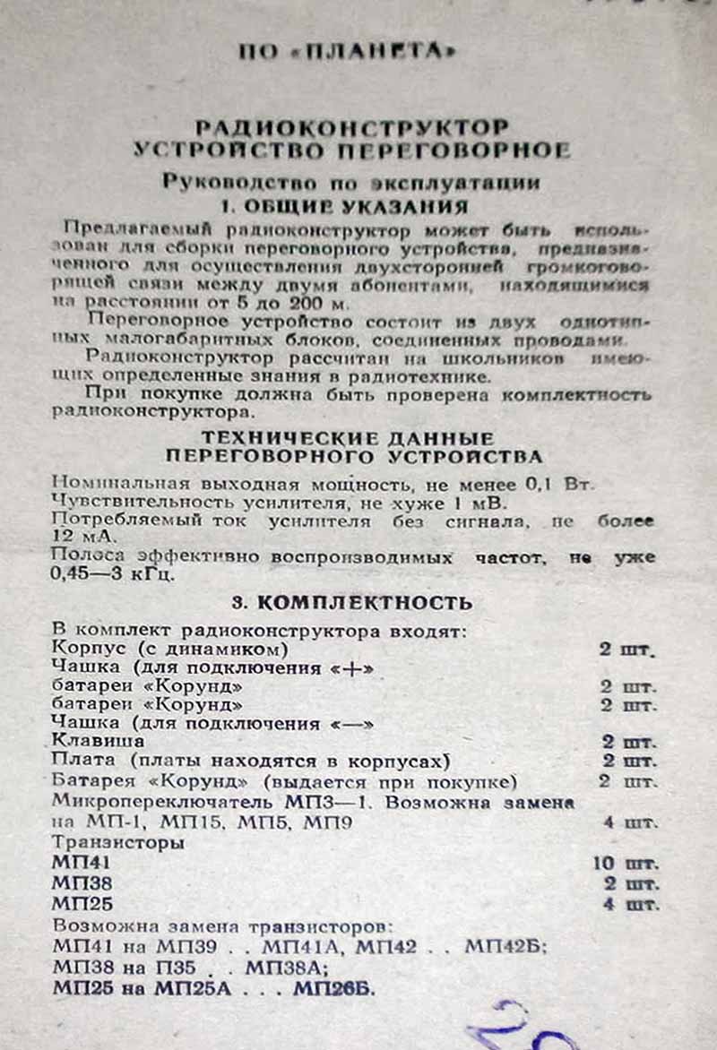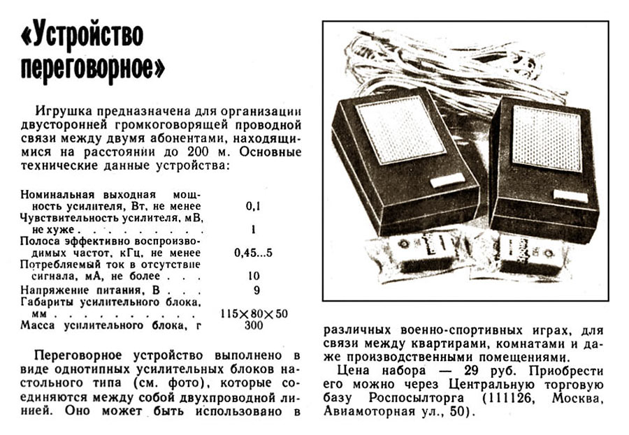 до 200 м. Комплект состоит из двух переговорных устройств, в одном