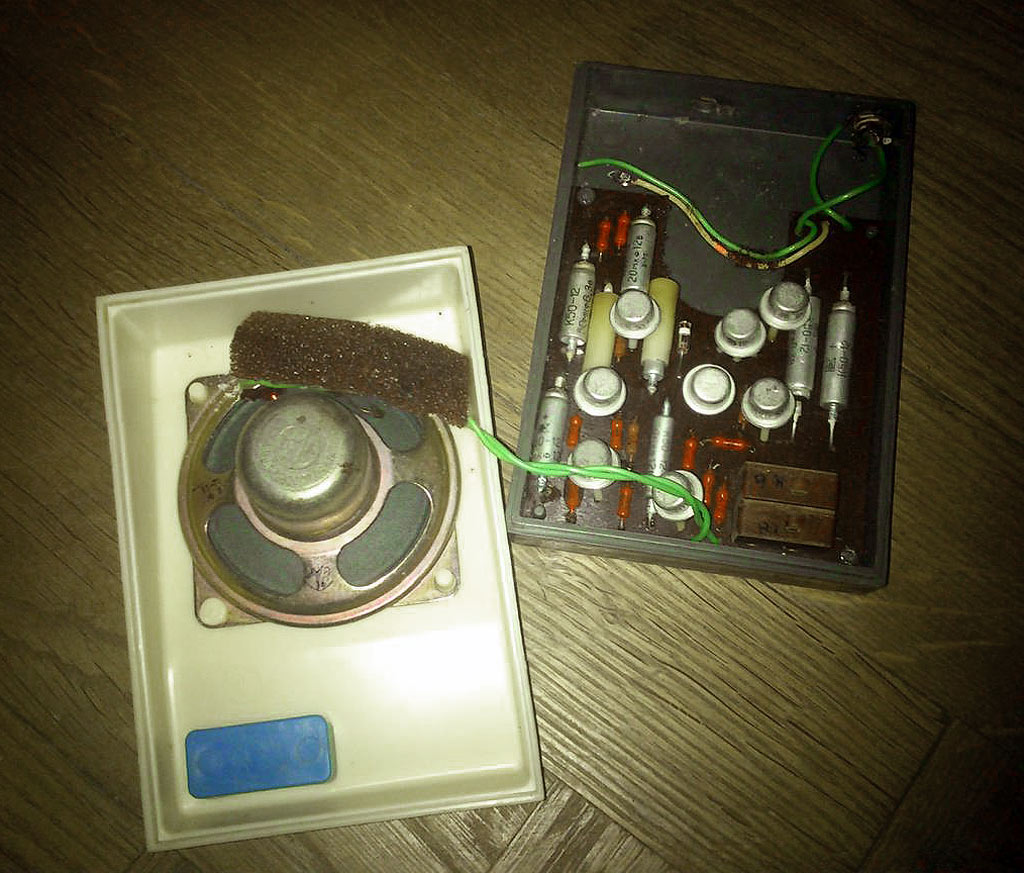 из которых смонтирован усилитель ЗЧ на транзисторах. В другом переговорном