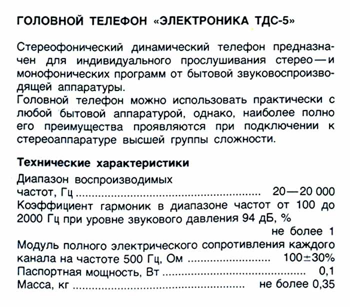 Головные телефоны "Электроника ТДС-5"