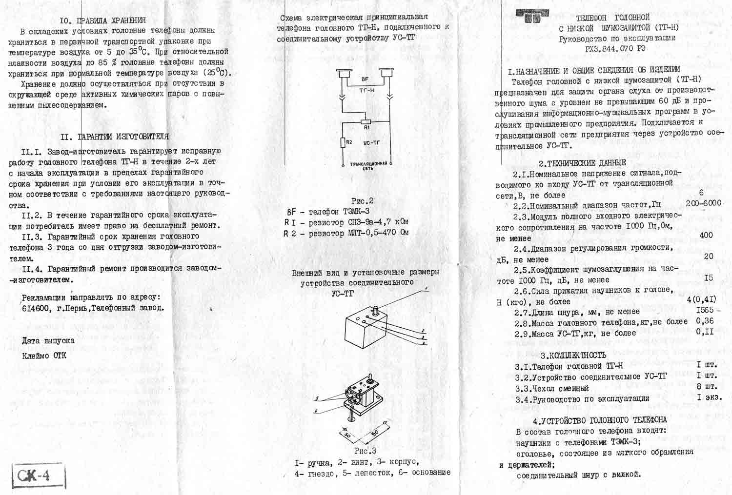 Телефон головной с низкой шумозащитой "ТГ-Н" выпускался возможно с 1985 года Пермским телефонным заводом (Телта). Инструкцию телефона предоставил Владимир Чащихин, город Пермь.