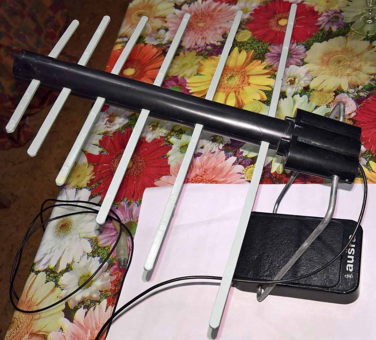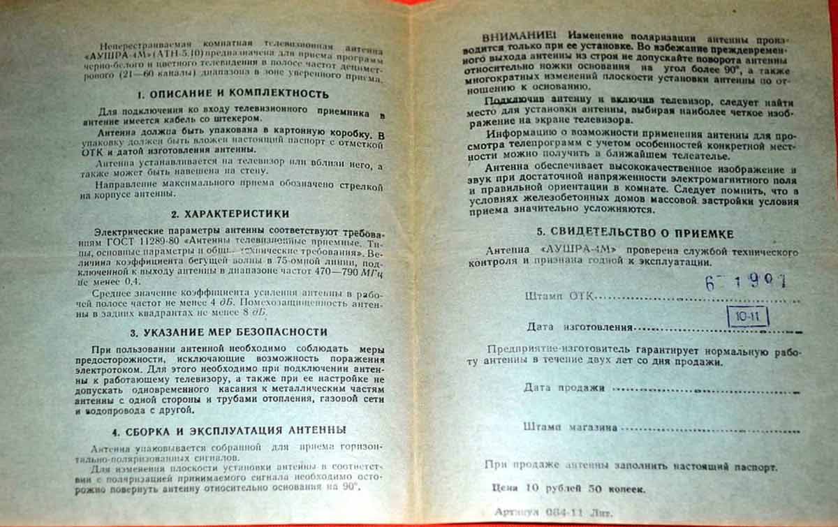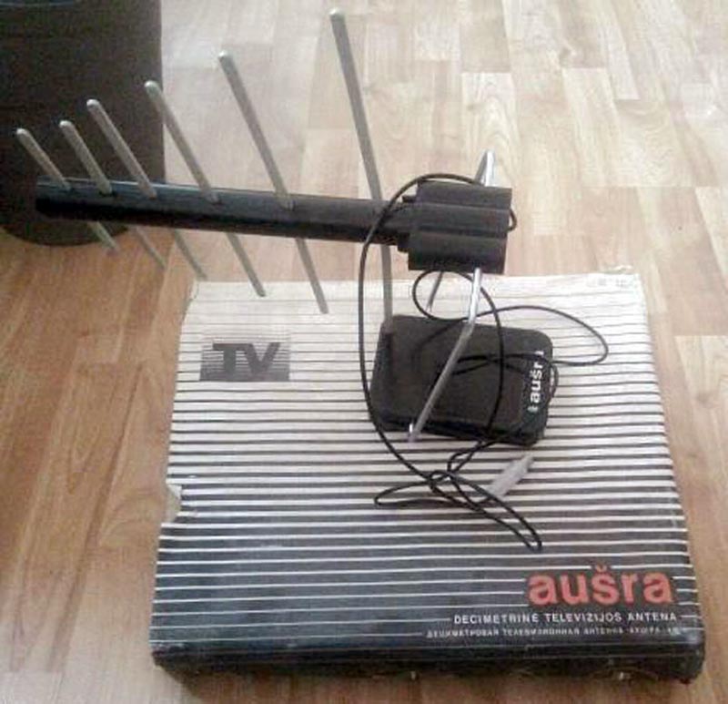 Антенна комнатная телевизионная ДМВ диапазона "Аушра-4М" (АТН-5.10) выпускалась возможно с 1987 года Вильнюсским заводом радиоизмерительных приборов.