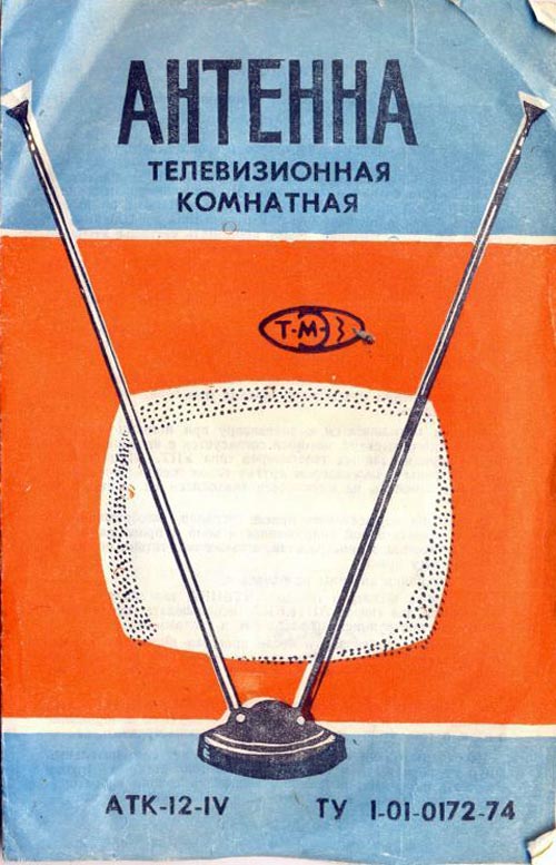 Антенна телевизионная комнатная "АТК-12-IV" выпускалась с 1975 года несколькими заводами, в разных вариантах оформления. Предназначена для приёма телевизионных сигналов с 1 по 12 каналы в радиусе до 10 километров от студии или ретранслятора.