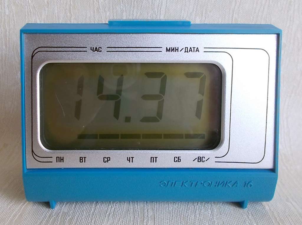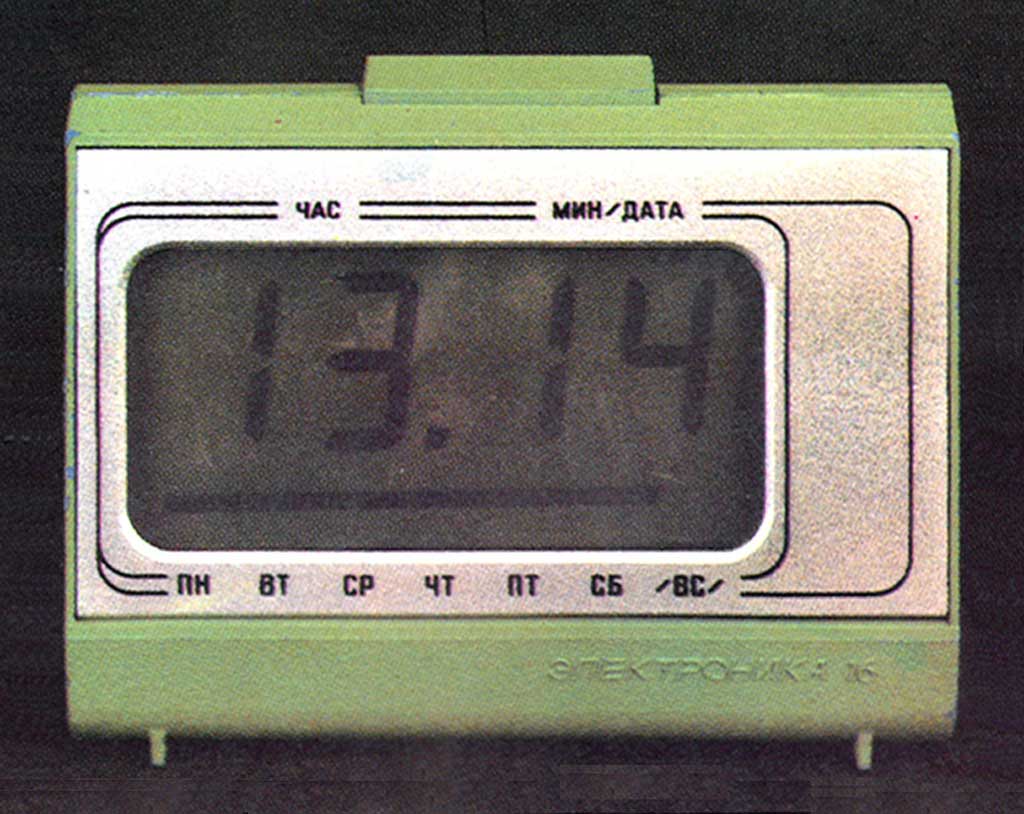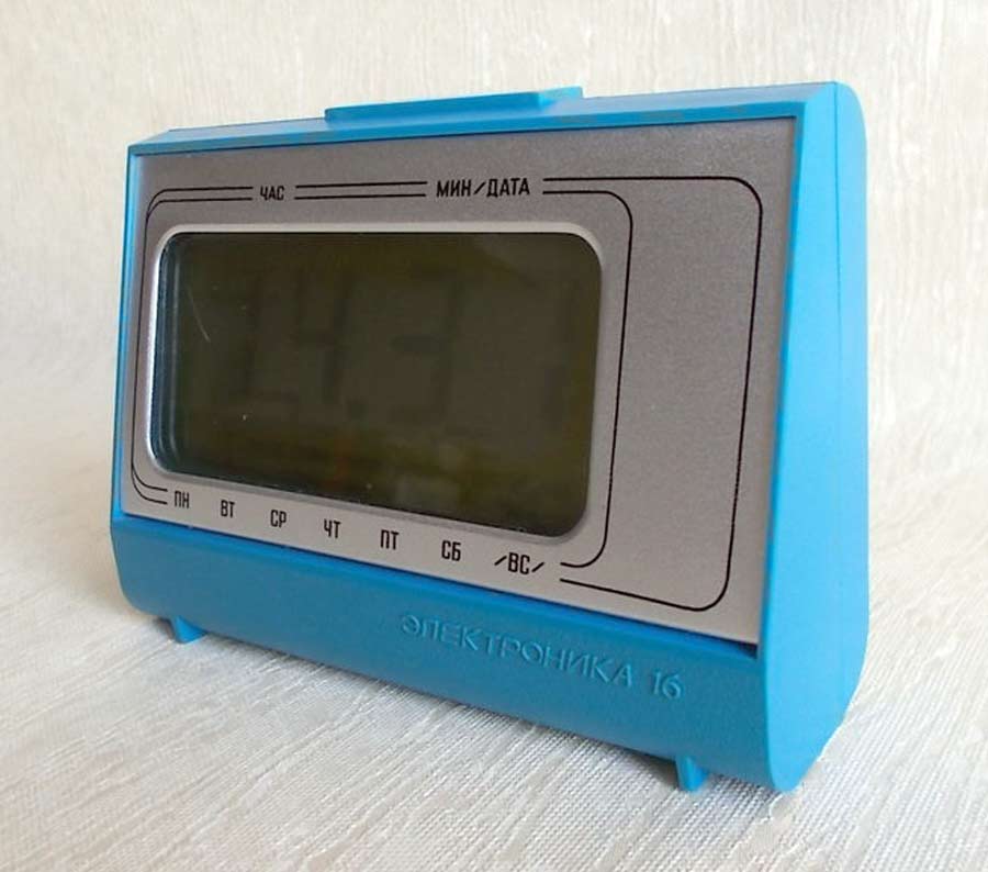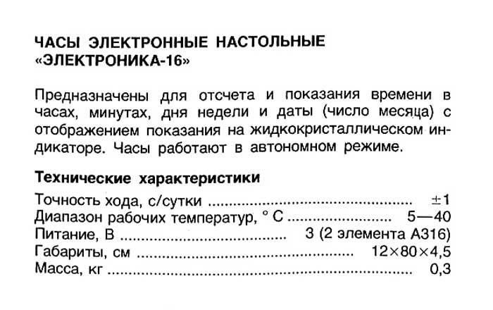 Часы электронные настольные "Электроника-16" выпускались предположительно с 1982 года. Малогабаритные электронные часы с показанием часов и минут, а так же даты и дня недели. Питание - автономное.