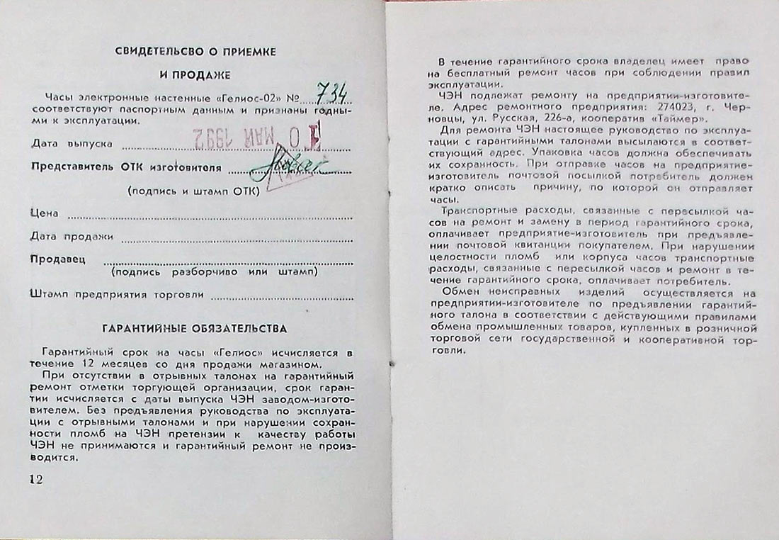 Часы электронные настольные "Гелиос-02" выпускались возможно с осени 1991 года. Предназначены для установки в общественных местах.