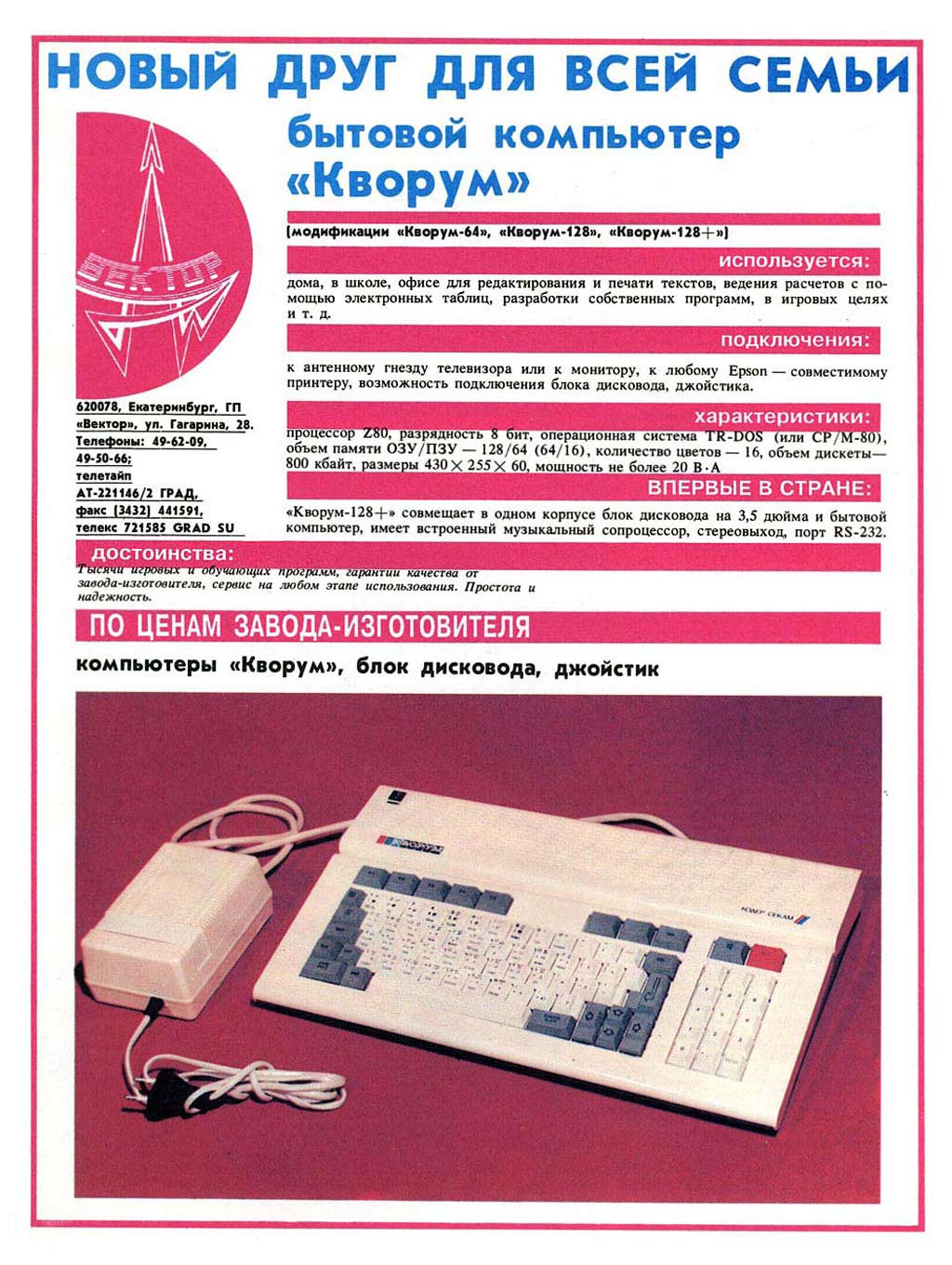 компьютер "Кворум" разработан и выпускался с 1991 года заводом "Вектор",