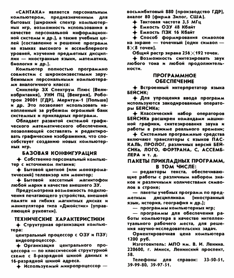 Персональный компьютер "Сантака-002" выпускался возможно с 1990 года Минским ПСЗ имени В.И.Ленина. Клоны ПК под названием "Импульс" и "Импульс-М" с 1991 года выпускал Краснодарский завод "РИП".