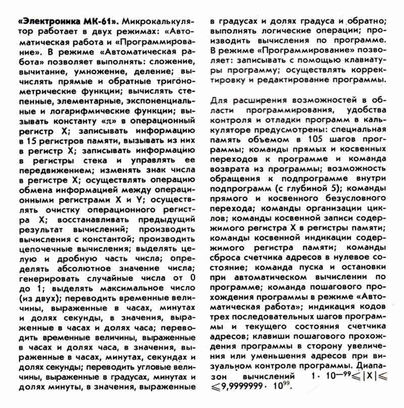 микрокалькулятора "Электроника МК-61" на сайтах https://ru.wikipedia.org/