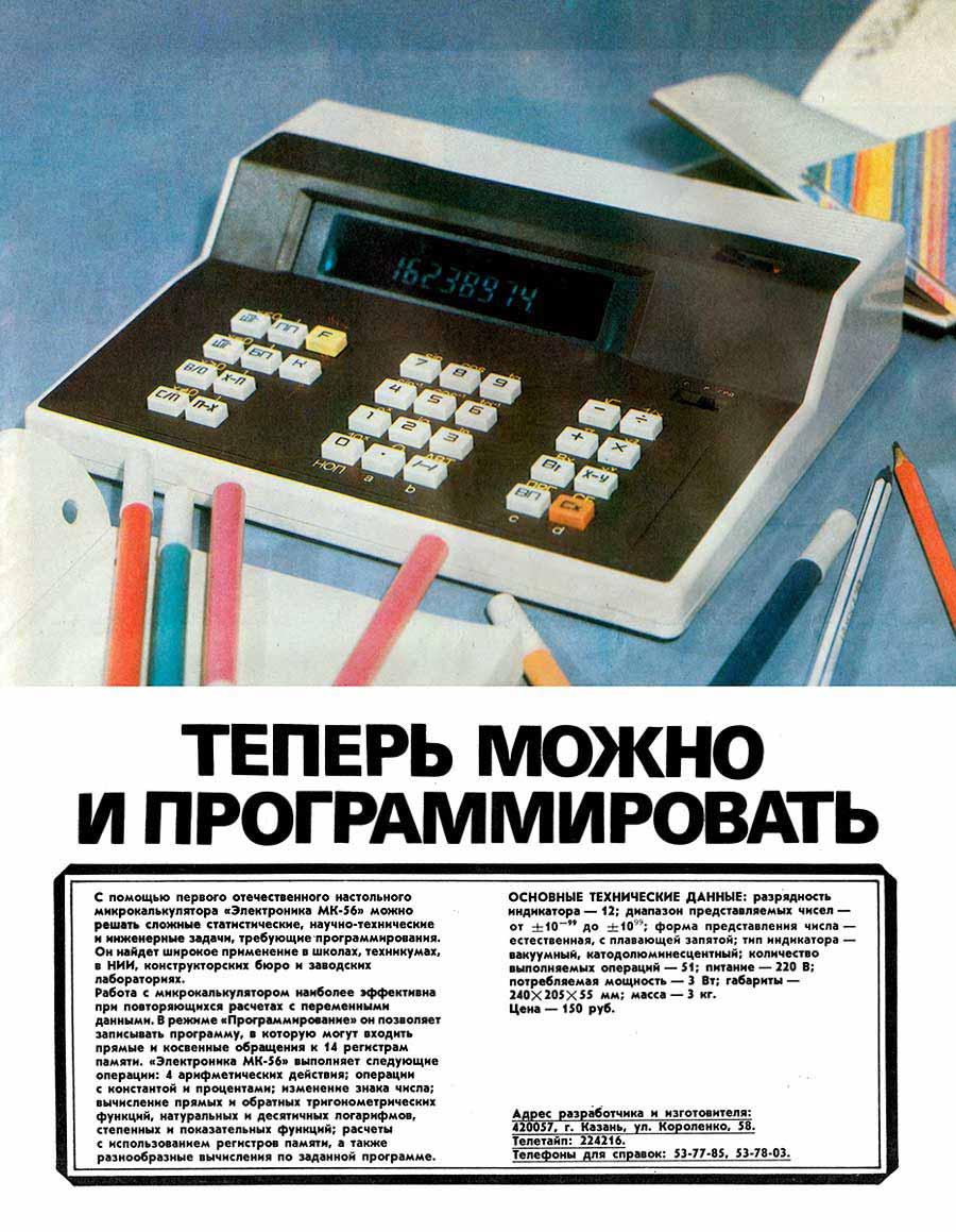 настольным аналогом микрокалькулятора "Электроника МК-54". Память на 98