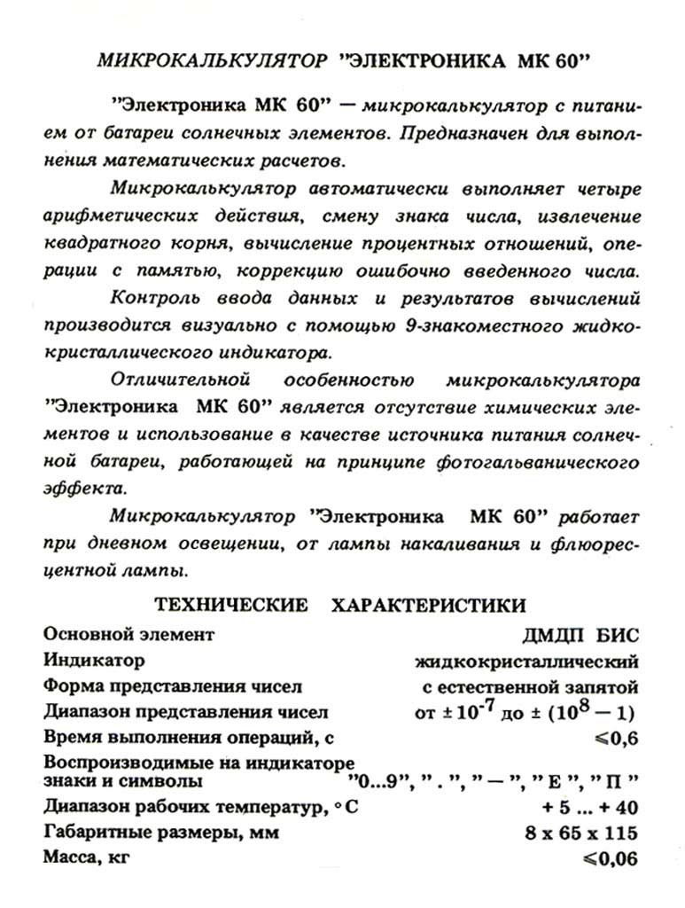 | Микрокалькулятор "Электроника МК-60"