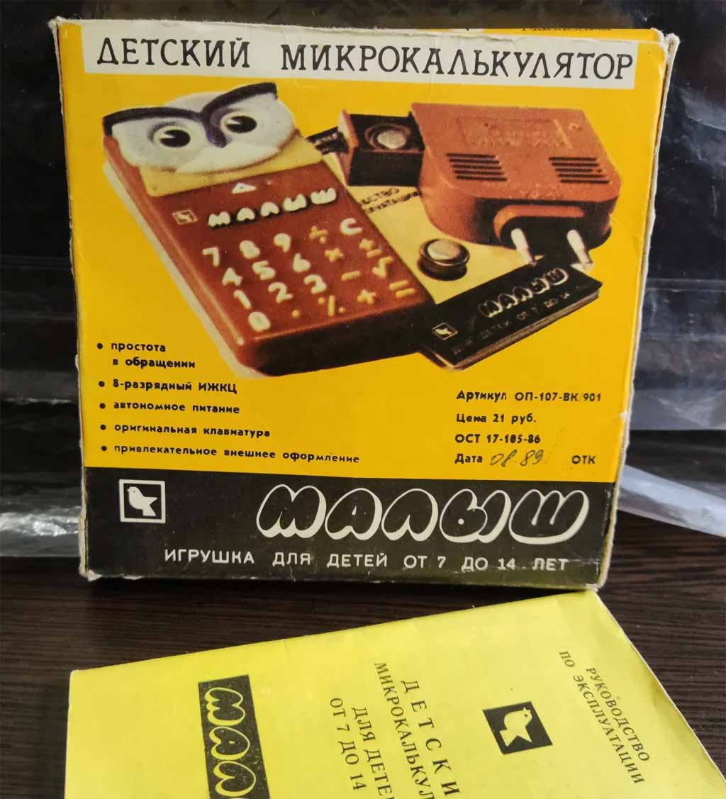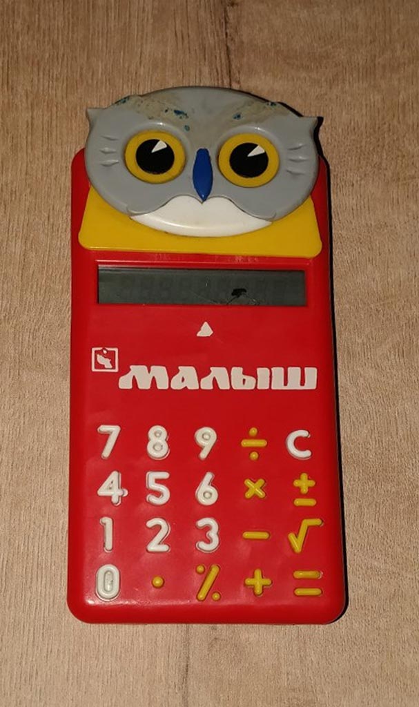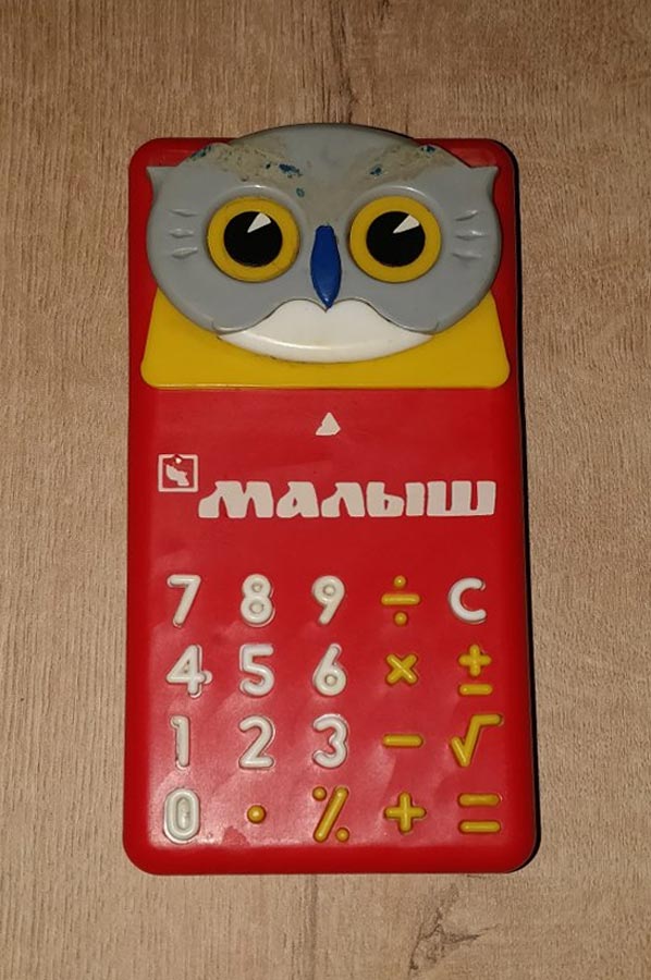 Детский микрокалькулятор "Малыш" выпускался с 1990 года Киевским ПО "Коммунист". МК в журнале "Новые товары" №11 за 1990 год. Ещё фотографии МК на сайте http://www.leningrad.su/.
