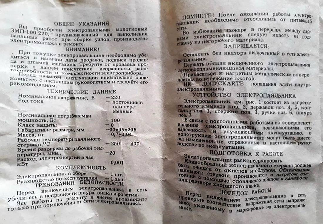 электропаяльник молотковый "ЭМП-100-220", подставка, а так же пакет с канифолью