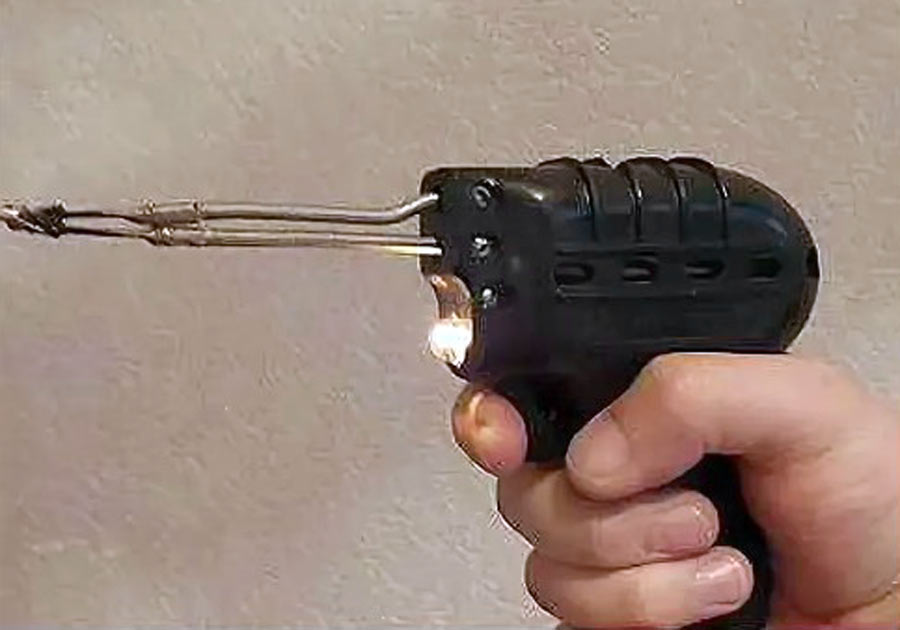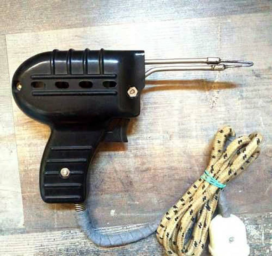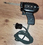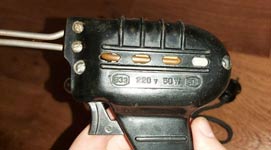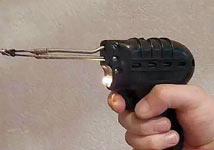понижающий трансформатор и лампочка подсвета места пайки. Нажатием курка