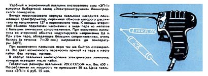 "ЭП-1" выпускался возможно с 1961 года Выборгским заводом "Электроинструмент".