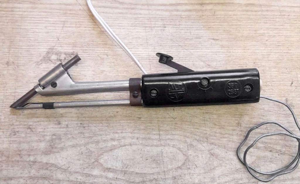 Рабочее напряжение 36 В. Электропаяльник выпускали на мощность 28 Вт и