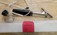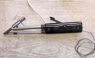 При нажатии на рычаг, прут олова с канифолью подаётся на жало электропаяльника.