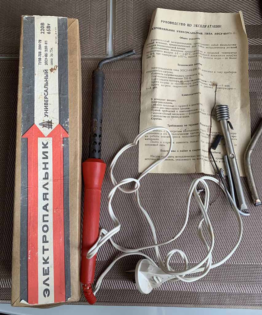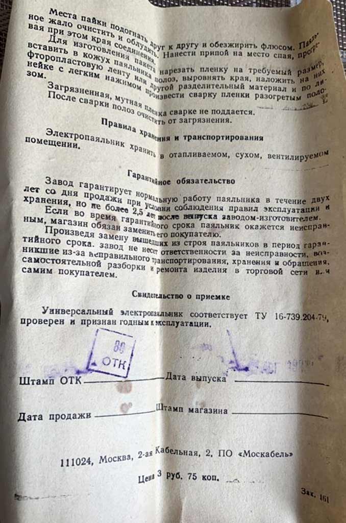 пленка 1,5 м. Цена электропаяльника 3 рубля 75 копеек.
